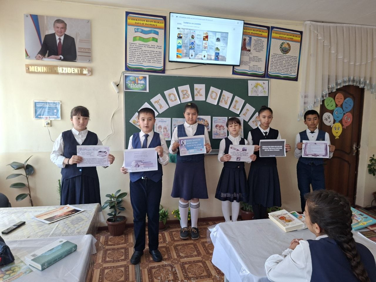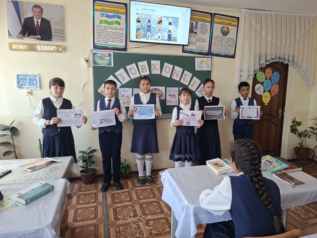 Kattaqo‘rg‘on shahar 16-umumiy o‘rta ta’lim maktabining 6- “A” sinfida “Kitobxonlik” mavzusida o‘tkazilgan Kelajak soati dars mashg‘ulotidan lavhalar.