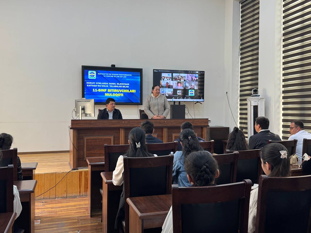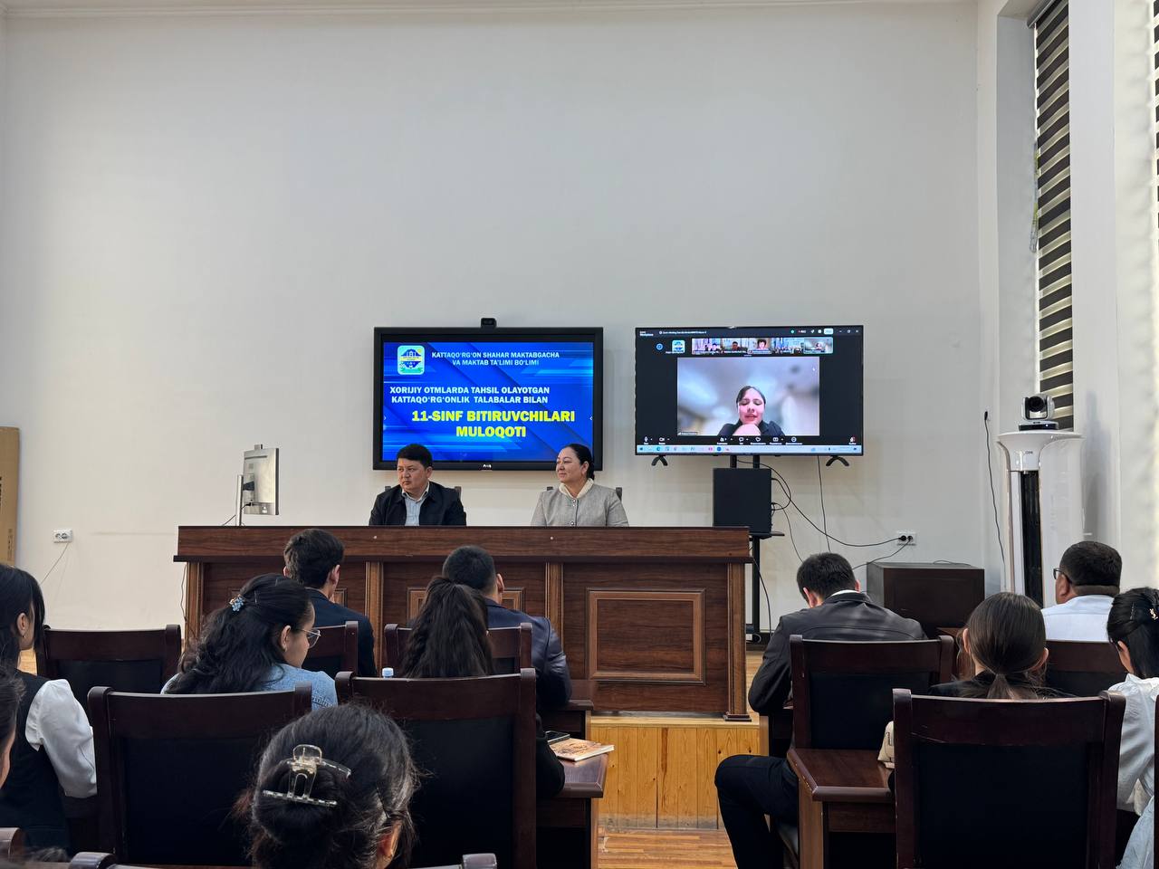 Онлайн обучение AQSH нинг Миссурийского университета талим олайотган 3-мактаб о’кувчиси С.Полатова, Ситой давлатида талим олайотган 12-мактабнинг собик битирувчиси Д.Эшанов ва Малайзия давлатида талим олайотган 14-мактабнинг собик о’кувчиси С.Талатовлар битирувчиларимизга хориджий талим муассасалари ва у йердаги та’лим тизими хакида малумот беришди.