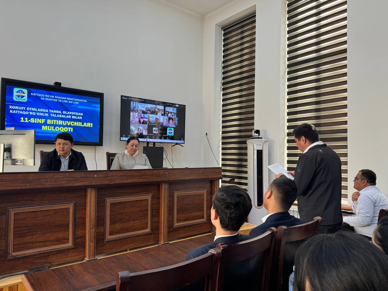 Учрашувда шахар хокими о’ринбосари Дж.Ганиев, ММТБ бошлиги М.Бекова хамда умумта’лим мактабларининг 11-синф битирувчилари иштирок этишди.